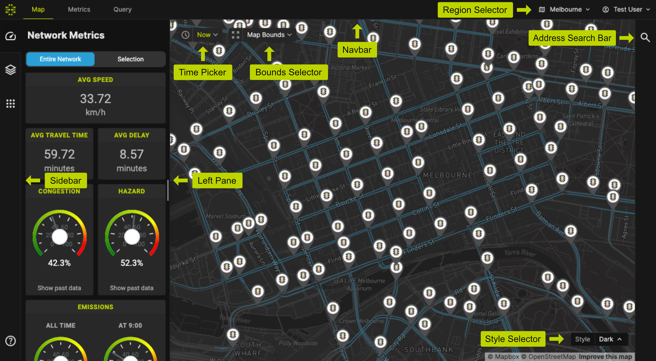 Use the Sidebar to navigate across different functionalities of the Map View.