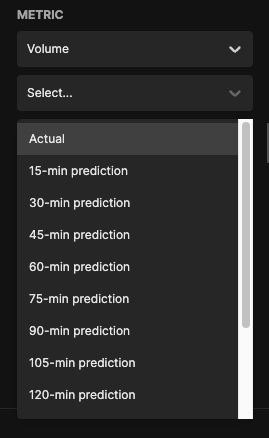 First, navigate to the Metrics page using the Navbar. On the left, you will see some configuration options.