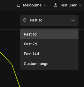 On the top right, there is a timeframe picker. Select one of the preset time period, or enter a custom time range.
