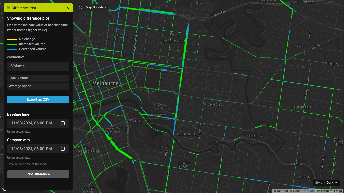 This app allows you to draw a difference plot to compare volume and speed between two different times.