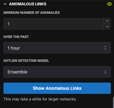 When "minimum number of anomalies" is set to 1 and "over the past" is set to 1 hour, it means that the Layer should flag links with at least 1 anomalous data point over the past 1 hour.