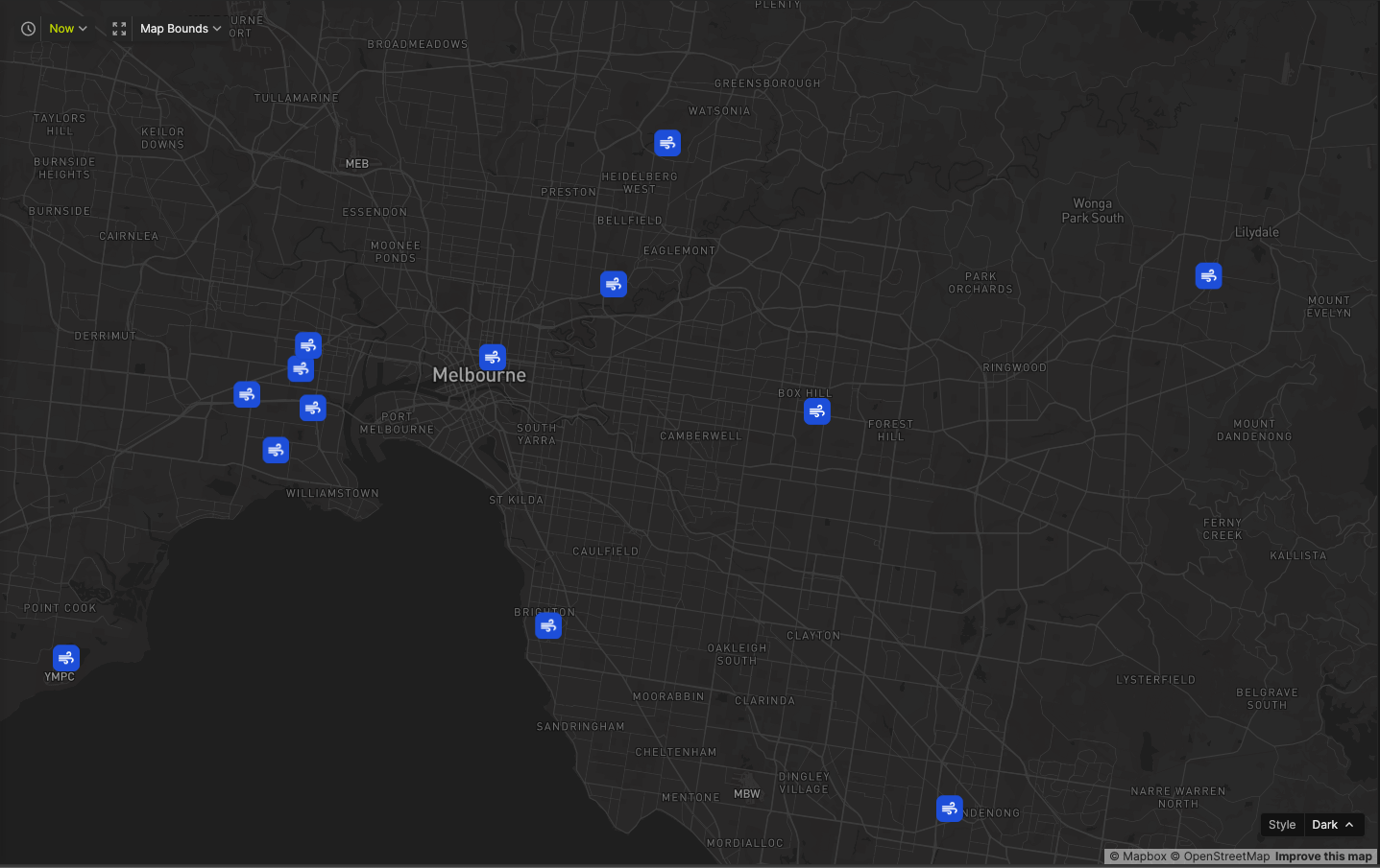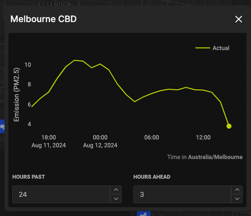 You can click on the emission detector icon (blue on the map) to view the historical PM2.5 reading of that detector.