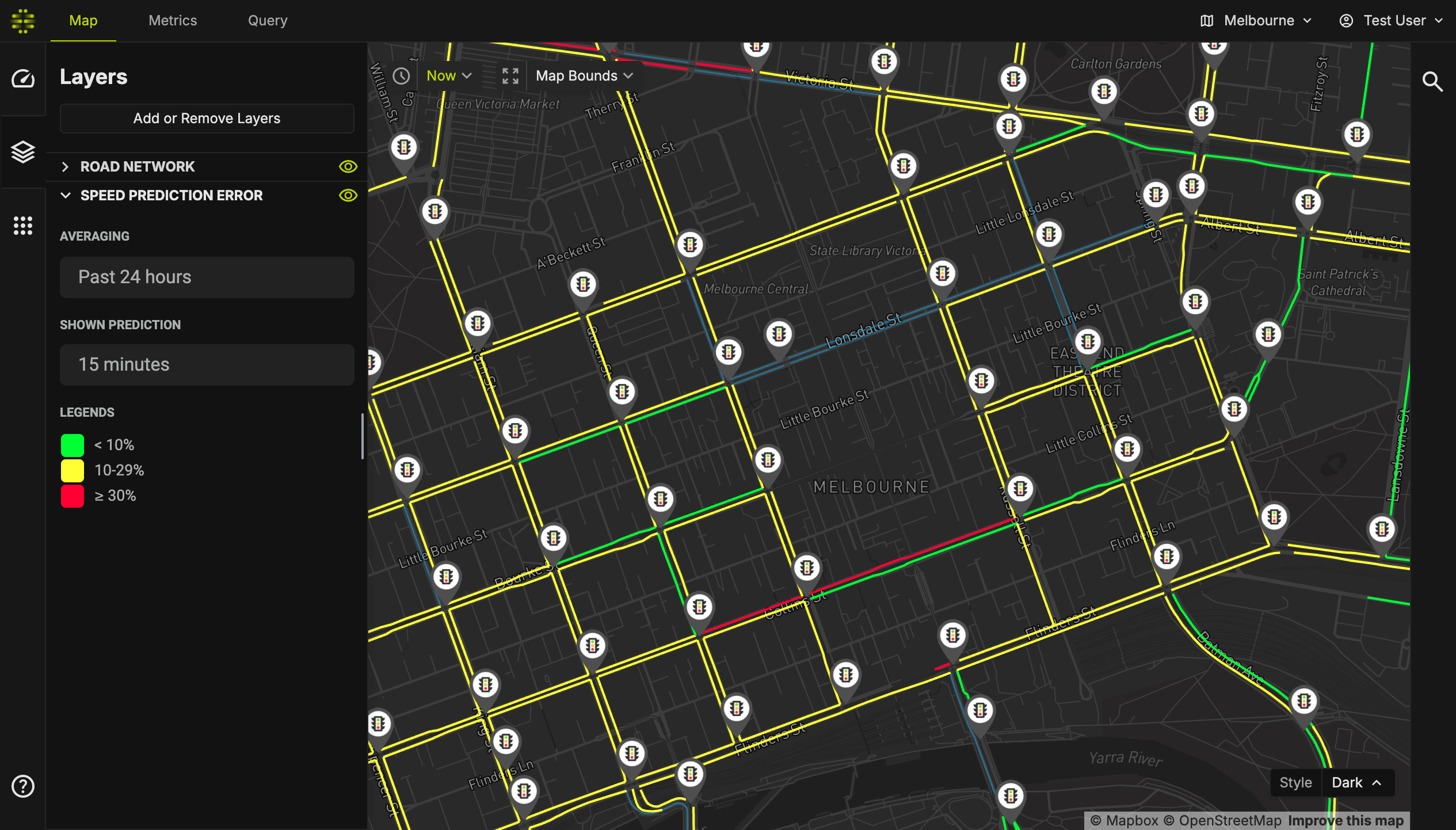 The platform predicts volumes every 15 minutes up to 3 hours ahead.