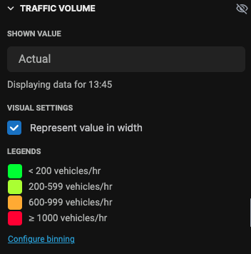 The layer comes with a default binning partition of 200, 600, and 1000 vehicles/hour.